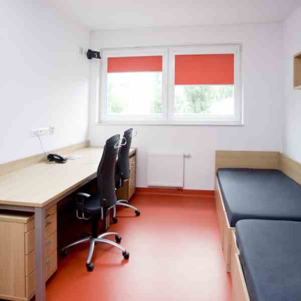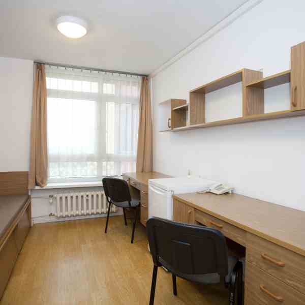 After arriving in Poznan, you will most likely move into one of the University dormitories – Eskulap, Medyk, Aspirynka and Karolek. Each room is furnished with beds, a table, chairs, desks, wardrobe, shelves, bedding, and a refrigerator.