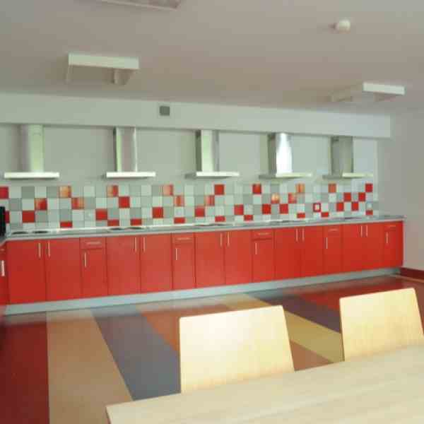The following facilities are also available in the dormitories: a kitchen, a TV room, and a laundry room, and quiet study rooms.
